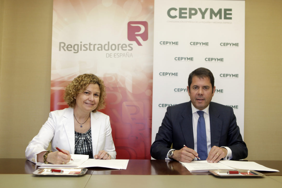 La decana del Colegio de Registradores, María Emilia Adán, y el presidente de CEPYME, Gerardo Cuerva, han firmado un convenio de colaboración entre ambas instituciones con el objetivo de acercar el asesoramiento de los registradores a las pymes. El convenio fomentará la relación entre las pequeñas y medianas empresas y los registradores, reforzará el conocimiento de ambos colectivos y facilitará el trabajo de los registradores a los pequeños y medianos empresarios.