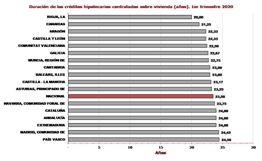 La duración media de los nuevos créditos hipotecarios ha mostrado un ligero incremento del 1,1%, registrando un período medio de 23 años y 6 meses.