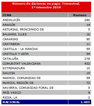 Las daciones en pago han registrado 1.405 operaciones durante el primer trimestre del año. Con relación al mismo trimestre de 2019 presentaron un descenso del 14,5%.