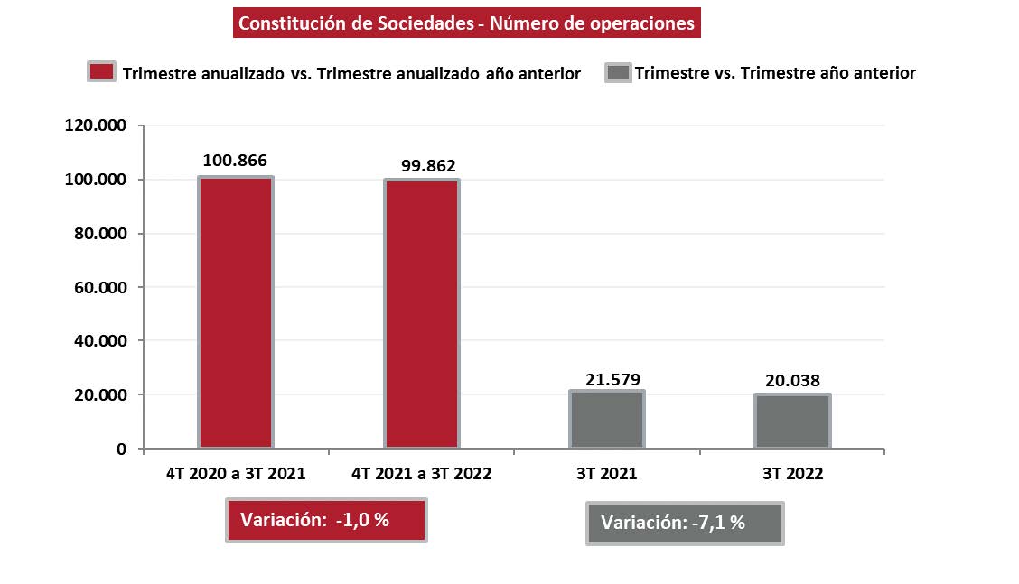 La constitución de sociedades disminuyó el 7,1% en el tercer trimestre de 2022
