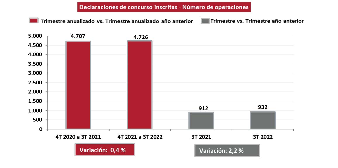 Las empresas con serias dificultades financieras, que inscribieron concurso de acreedores entre julio y septiembre fueron 932, un aumento del 2,2% con relación al mismo trimestre de 2021.