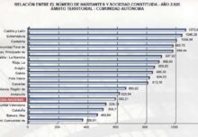 Por Comunidades Autónomas, en el tercer trimestre, con relación al mismo período de 2021, la creación de sociedades mercantiles descendió en casi todos los territorios, siendo más importante la caída en las Ciudades Autónomas de Ceuta y Melilla (-42,5%), Castilla y León (-20,7%) y Navarra y La Rioja (ambas -20,5%). Únicamente se incrementó en Cantabria (5,4%) y Baleares (4,6%).