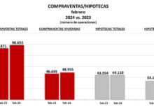 Los crecimientos moderados a partir del tercer trimestre de 2021, con valores alrededor del 5% de incremento, incluido enero, rompen su tendencia en febrero, con el descenso ya indicado.